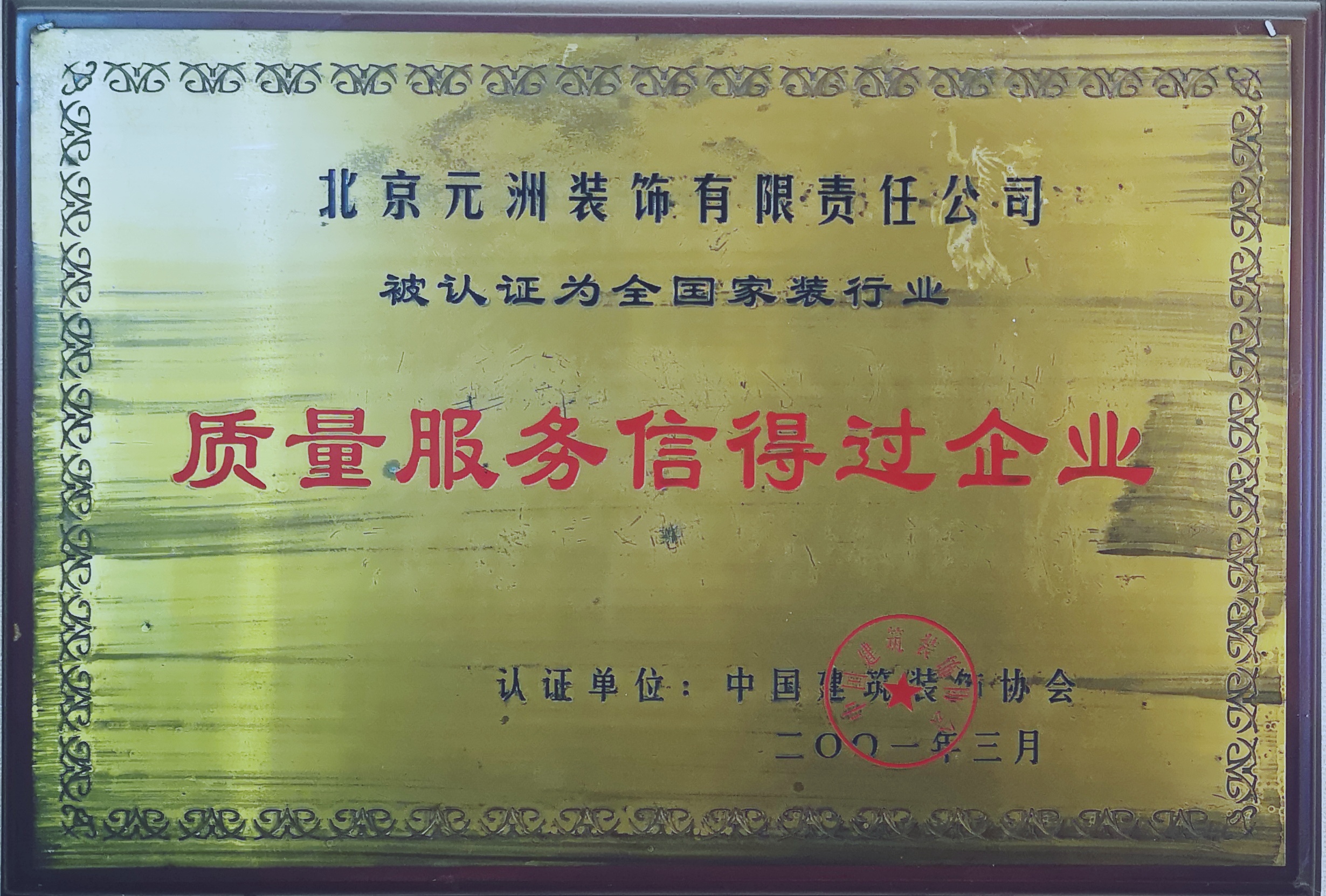 中國裝飾協(xié)會(huì)頒發(fā)質(zhì)量服務(wù)信得過企業(yè)